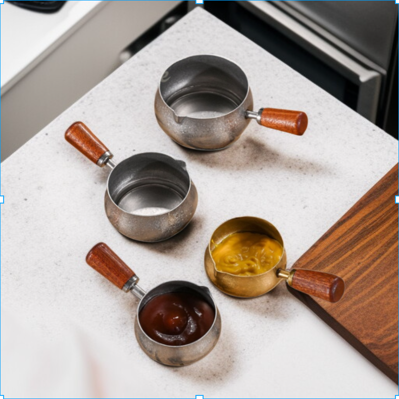 Farbe: Holzgriff-Saucenbecher klein 60ml (Vintage Silber), Holzgriff-Saucenbecher mittel 120ml (Vintage Silber), Holzgriff-Saucenbecher groß 180ml (Vintage Silber), Holzgriff-Saucenbecher klein 60ml (Vintage Gold), Holzgriff-Saucenbecher mittel 120ml (Vintage Gold), Holzgriff-Saucenbecher groß 180ml (Vintage Gold)